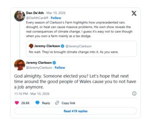Councillor De’Ath then responded to Clarkson, arguing that Clarkson’s Farm showed the effect climate change could have on farms.