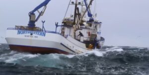 As waves slam the hull and the boat begins to roll without propulsion, the situation escalates quickly. Without power, the Northwestern risks turning broadside to the swell — a scenario that can spiral fast in Bering Sea conditions.