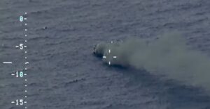 Moments later, the Coast Guard aircraft confirms that the crew members are drifting in a life raft.